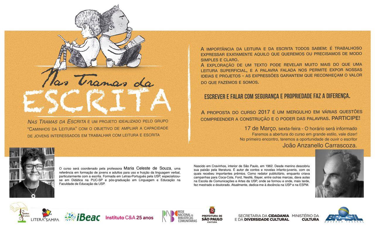 Nas Tramas da Escrita é um projeto idealizado pelo grupo “Caminhos da Leitura” com o objetivo de ampliar a capacidade de jovens interessados em trabalhar com leitura e escrita com mais segurança e tranquilidade.